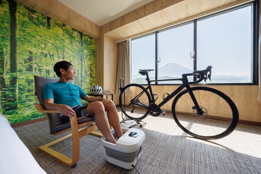 露天風呂では筋肉痛に効果がある泉質とされる「大山温泉」をお楽しみいただけます。サウナと水風呂も完備しており、のびのびと手足を伸ばして心地よい疲れを癒すことができます。大浴場はチェックアウト後、サイクリングを楽しまれた後もご利用いただけます。さっぱりと汗を流してからご帰宅、次の目的地に移動いただけます。さらに当プランで宿泊のお客様の客室にはフットバス足湯器をご用意。酷使した足をプライベートな空間で癒しながら、寛ぎのひと時をお過ごしください。