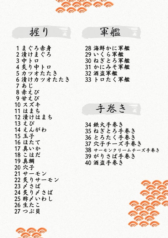 ・食べ残しがあった場合は、1貫につき220円(税込)頂きます。