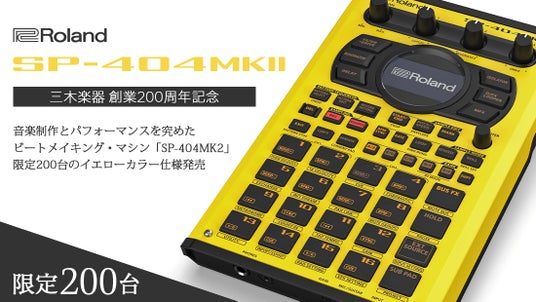 これまでの Roland の SP シリーズで人気の要素を凝縮しながらも、操作性や利便性がさらに向上したSP-404MK2に、三木楽器200周年を記念して、イエローカラー仕様が登場。200台の限定販売です。