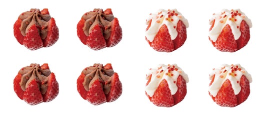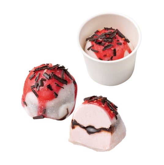 爽やかなストロベリーアイスクリームに、オリジナルのチョコソースを忍ばせ、柔らかな求肥で包みました。フランボワーズソースや苺、チョコレートのトッピングで華やかに仕上げました。苺の甘酸っぱさとチョコソースの濃厚さ、もちもちとした求肥のハーモニーが上品な味わいです。