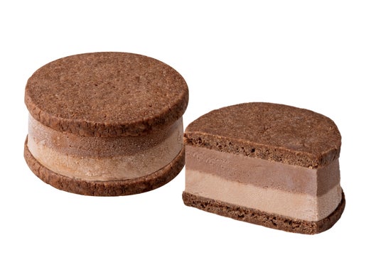 カカオ香るほのかな苦みのダークチョコレートアイスと、ヘーゼルナッツが香るまろやかなミルクチョコレートアイスをサブレ生地でサンドしました。サクサク、ほろっとしたサブレとなめらかなアイスが織りなす贅沢な味わいが楽しめます。