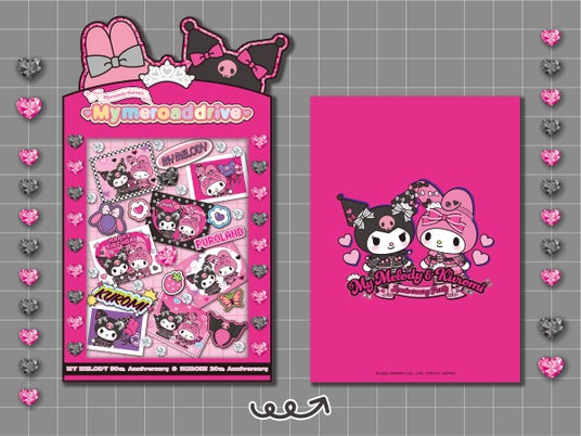 さらに、1F イベントコーナーでは、「My Melody & Kuromi Anniversary スペシャルペアグリーティング」を開催。 「おそろいバースデー」をイメージした、キュートでクールなおそろいのコスチュームをまとったマイメロディとクロミに会って一緒にお祝いできます。その他、新たなオリジナルグッズを発売。「~マイメロディ&クロミ~マイメロードドライブ」では、アニバーサリー限定の記念写真フォトフレームとフォト台紙の登場を予定しております。