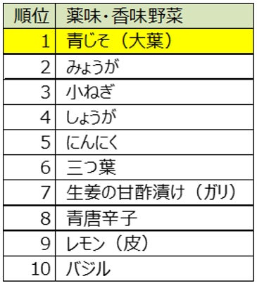 ※夏に人気の薬味・香味野菜ベスト10(サラダクラブ調べ)
