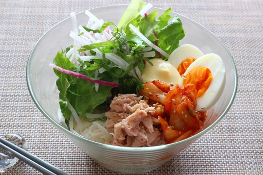 キムチの漬け汁やツナ缶のオイルはうまみがたっぷり。麺や野菜と絡めてムダなく調理!暑い夏にさっぱりと食べやすい、野菜たっぷりサラダ麺です。