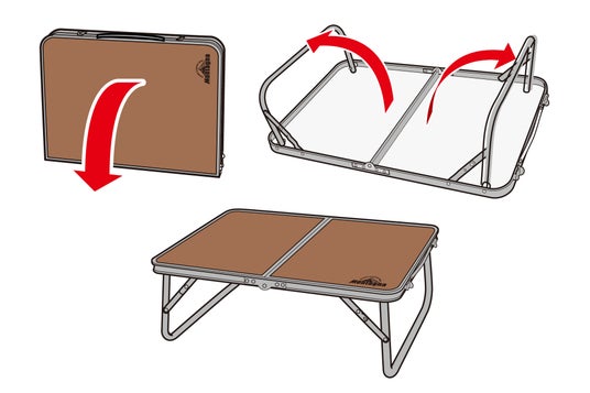 特徴:落ち着きのあるシックな木目調のローテーブル。手頃に持ち運べるコンパクトサイズなので、ピクニックでのランチテーブルや、本格アウトドアのサブテーブルとして実用性が抜群!軽量で持ち運び楽々。