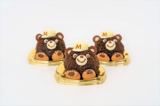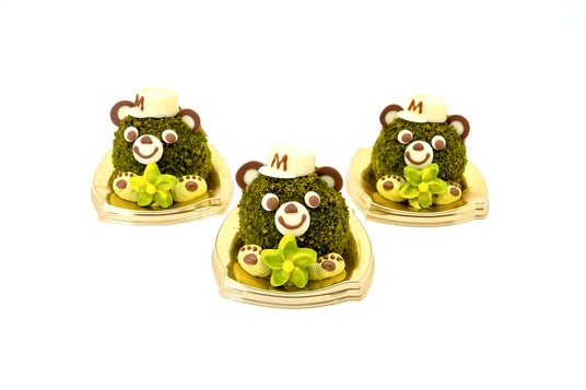 こぐまくんの顔部分は愛知県西尾市産の抹茶ムースと、優しい甘さのホワイトチョコムースの2層に。外側は抹茶のグラサージュをコーティングし、上からほろ苦い抹茶スポンジで包み込みました。抹茶×ホワイトチョコが絶妙なバランスで、深みのある味わいに仕上がっています。