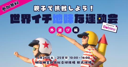 リアルな育児の“あるある”をユニークに昇華させた企画で話題を集める、今最も参考にされている*ベビーグッズの口コミサイト「Babiew べビュー」を運営するBEFFY株式会社(本社:東京都渋谷区、代表取締役CEO:金木りな)は、「世界イチ地味な運動会 by Babiew 外あそび編」を、2025年5月24日(土)・25日(日)にコールマンが明治神宮外苑 総合球技場にて開催する都市型の屋外イベント「The Coleman Day Camp 2025」にて実施いたします。
