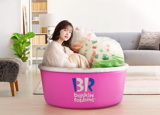今回の総選挙のためにデザインした、サーティワンのフレーバーに埋もれて至上のひとときを過ごせる「巨大ダブルカップクッション」にもSNS上で大きな注目が集まりました。