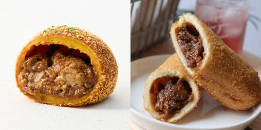 (写真左) 大阪<ハウス カレーパンノヒ>角切りビーフカレーパン(1個)551円