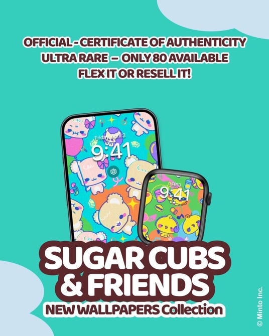 株式会社 Minto(本社:東京都港区、代表取締役:水野和寛、以下 Minto)は、ブロックチェーン認証プラットフォームを提供するBitbrand(本社:ニューヨーク)と、当社キャラクター「シュガーカブス」「うさぎゅーん!」「べタックマ」「ぴよまる」「おしりのミミ&ネコ」の数量限定のデジタル壁紙・ウォッチフェイスコレクション 「SugarCubs & Friends」 を2025年5月より全世界で発売開始したことをお知らせします。
