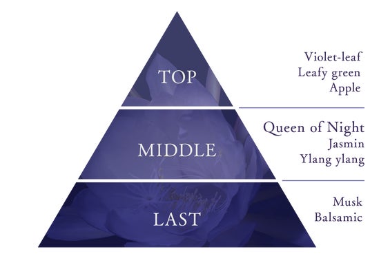 “月下美人”は、夜の間にだけ咲くという性質を持ち、透けるように白くて美しい花を女性に例え、名付けられました。月夜に美しく咲く“月下美人”のように、初夏の季節に、内に秘めた輝きを解き放ってほしい、という思いを込めて、その優雅で甘い香りを、花王独自の「エアロセント技術(R)」で再現。ジャスミンなどのホワイトフローラルをメインとした月下美人に、バイオレットリーフなどの生花を想起するグリーンを組み合わせることで、繊細で軽やかな月下美人の香りを表現しています。