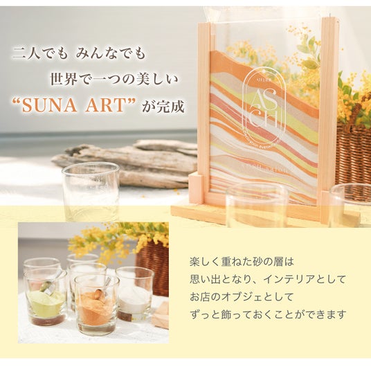ブライダルグッズの製作事業をする株式会社LIB(山形県山形市)と協業し、新商品「SUNA ART」の先行販売する運びとなりました。