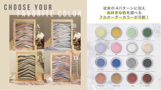砂のカラー内容も、従来は色が組み合わさった4パターンから選ぶことができましたが、従来の組み合わせに加え、お好きなカラー16色から選んでフルオーダーカラーが可能になりました。
