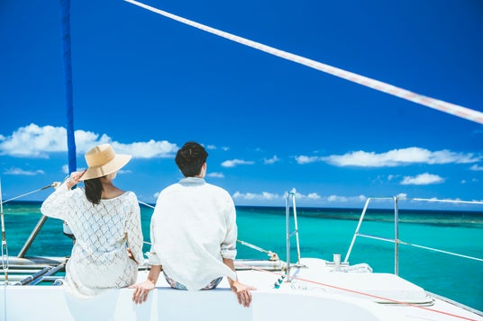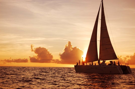 サンセットセーリング空と海が茜色に染まる夕暮れ時にカタマランヨット「キラ号」に乗って水平線に沈む夕陽をながめるロマンチックなサンセットセーリングがお楽しみいただけます。