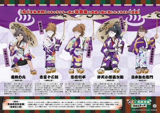 「忍たまと学ぶ!極楽湯の楽しみ方」のポスターを探してスタンプを10個集めた方に歌舞伎柄ポストカードをプレゼントします。