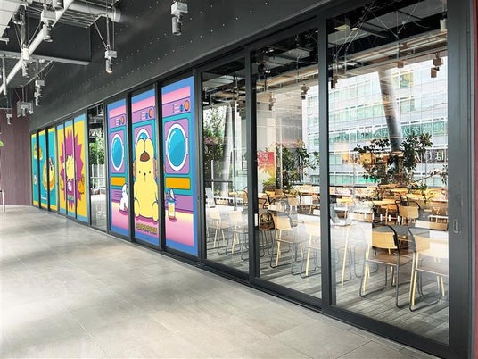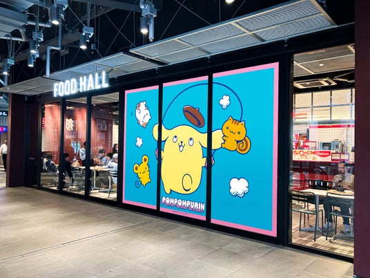 キャンペーン期間中、South 3Fフードホールのガラス面がポムポムプリンのデザインに装飾されます。