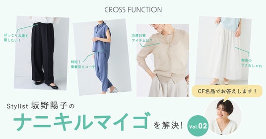 【CROSS FUNCTION(クロス ファンクション)】体型カバーも叶える初夏・梅雨の高機能アイテムスタイリスト坂野陽子さんによる連載「ナニキルマイゴを解決」第2弾を公開