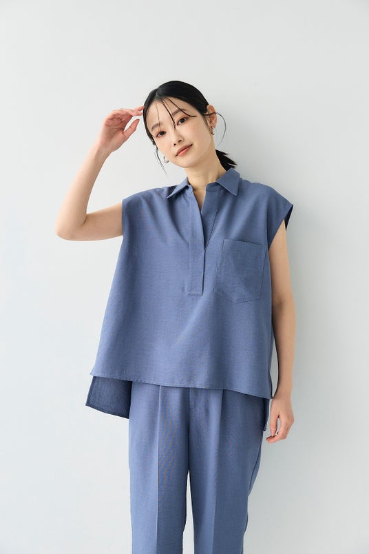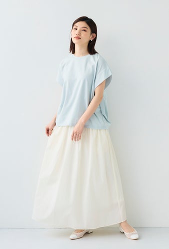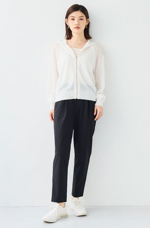 華奢見えには、ハリ感がありつつも柔らかい素材がベスト。時短ときちんと感の両方を叶えてくれるセットアップは“サマナチュラ”のセットアップがおすすめ!トップスとボトムスの組み合わせが何通りもあるので、自分に合ったスタイルを組み合わせることが出来るのも魅力の一つです。接触冷感やUVカット機能があるので、これからの季節にヘビロテの予感。