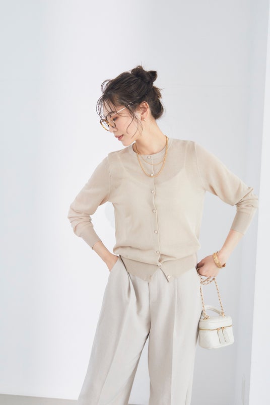 外はジリジリ暑いのに、会社や涼みに入ったお店が冷房が効きすぎていて寒い思いをしたことありませんか?そんな時は、バッグに忍ばせておける程度のコンパクトに畳めるアイテムがオススメ!シワになりにくいシアーニットは機能性とおしゃれの両立が叶います。
