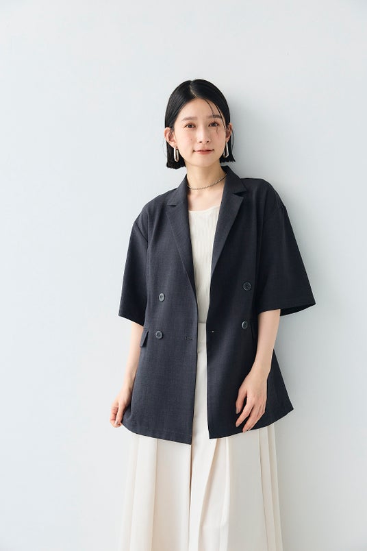 《シワになりにくい》サマナチュラ リネンライクハーフスリーブテーラードジャケット