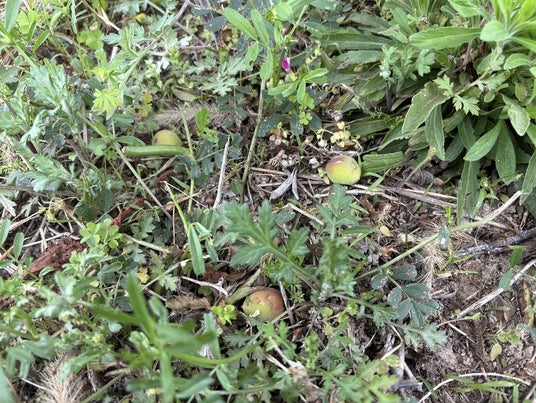 雹の衝撃で落ちてしまった梅の実