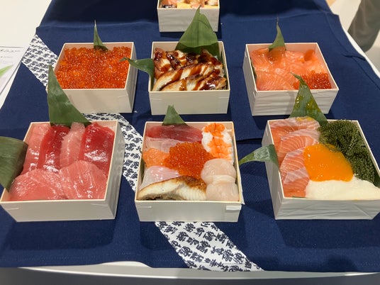 ORA外食パビリオン「宴~UTAGE~」で2025年5月12日(火)~6月1日(日)には、サスティナブルな「閉鎖型水循環式完全陸上養殖のシーフード」を使ったテイクアウト専用「すし箱」を販売!