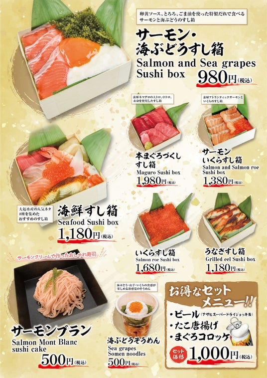 イベント販売商品:捌きたて本鮪丼 1980円(税込)、マグロにぎり寿司6貫 1500円(税込)