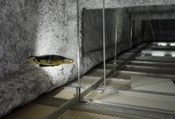 レースコースは、鉄道の駅をモチーフに設計します。ドローンが天井裏・床下空間をイメージした構造の中を巧みに飛行し、Suicaを実際の改札機にタッチしてゴールします。見慣れた駅の風景に、ドローンが飛び交う未来の都市像を重ねたコースです。