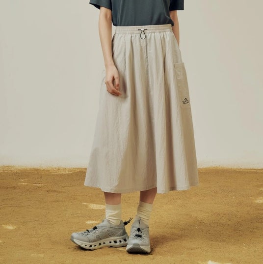 薄手で速乾性に優れたUVカット素材を採用。足元までしっかり覆うAライン設計で、アウトドアでも女性らしいスタイルをキープ。ウエストはゴム+ドローコード仕様で快適フィット。