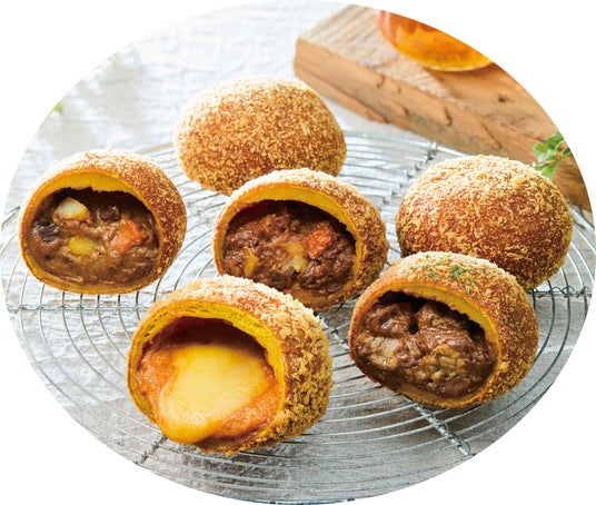 ハウス食品が試行錯誤を繰り返し、誕生した「カレーパンノヒ」からカレーパングランプリを4年連続受賞した4商品が勢揃い。
