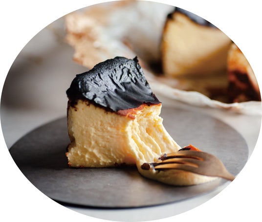 瀬戸内海に面した築120年の古民家カフェから、カラメルのような香ばしい表面と濃厚なチーズのハーモニーが魅力のバスクチーズケーキを。
