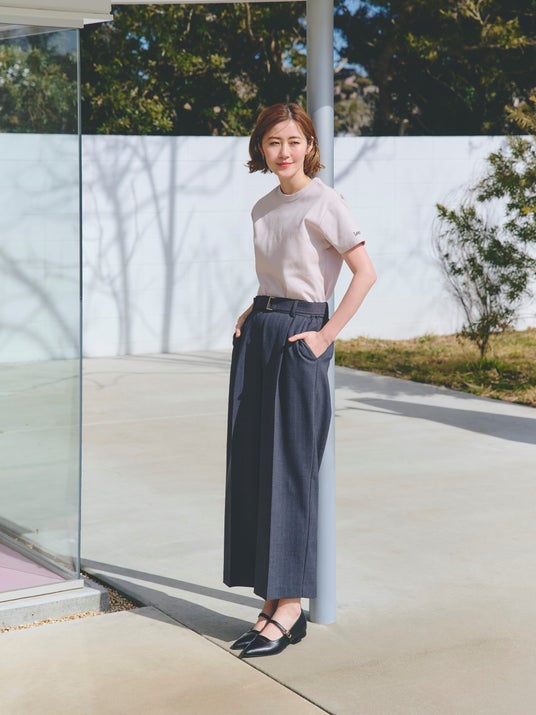 シンプルなコンパクトフィットTシャツは、爽やかで上品なピンクを別注色としてオーダー。柔らかな色合いが、きれいめカジュアルを好む大人の女性にぴったりです!