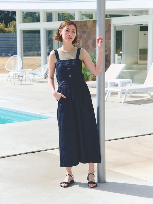 マルチウェイで楽しめるビスチェ付きのデニムスカートは、肩紐のストラップをgroveの別注デザインとしてオーダー。