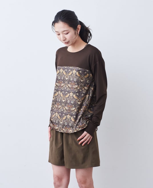 【NEW】リブ イン コンフォート 大人モリスの世界 「いちご泥棒」柄を秘めた優美な水着セット〈ブラウン〉