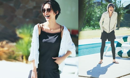 ◆スタイリスト福田麻琴さんコラボの水際アイテムには水陸両用で使いまわせるパーカータイプのラッシュガードが新登場!