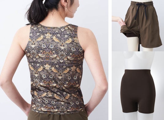 フェリシモは4月25日、ファッションブランド「Live in Comfort[リブインコンフォート]」より「大人モリスの世界 「いちご泥棒」柄を秘めた優美な水着セット〈ブラウン〉」の販売を開始しています。モリスギャラリーの人気柄「いちご泥棒」との配色が華やかな、大人の女性に向けたエレガントなデザインに加え、体型カバーを期待できる工夫も随所に。脇や、背中の開きが少ないボックスシルエットのパッド付タンキニと安心感のある1分丈インナーショーツ、裾にドロストが付いていてめくれ上がりにくいラッシュガード、そして長め丈のハーフパンツがセットになり、洋服を重ね着するみたいにコーディネートして気になる部分をカバーできます。またサイズもSから4Lまでと豊富です。モリスギャラリーとのコラボは大人の女性から絶大な支持を得ており、水着には抵抗があるという方でも服を着る感覚でプールサイドのおしゃれを楽しむことができます。ファッションブランド「IEDIT[イディット]」の人気スタイリスト福田麻琴さんと考えた「服みたいな水着」シリーズにも、同日より水陸両用で使いまわせるパーカータイプのラッシュガードが新登場しています。