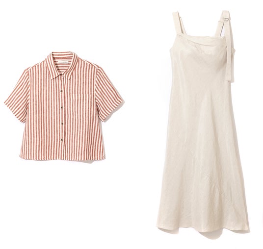 さらに、汎用性の高いリネンボクシーシャツ(15,000円)や、光沢感が美しいビスコースリネンドレス(24,000円)にも注目です。※すべで税込価格です。