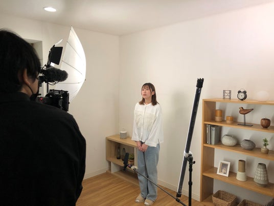 今回の webCMは、ドラマ仕立てのショートストーリーという企画であったため、演者を決めるオーディションを実施。プロの俳優やタレントが集まるオーディションに、本学の声優・演劇科の学生たちも混じり挑戦しました。結果、進路に悩む高校生役に、声優・演劇科の学生男女一名ずつが選ばれ本収録に臨みました。これまで学修の一環として、動画の編集や録音等の技術面でテクノスの学生が携わるという機会はありましたが、演者として学生が本学のCMに出演するのは初の試みです。