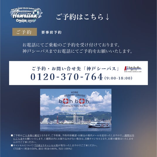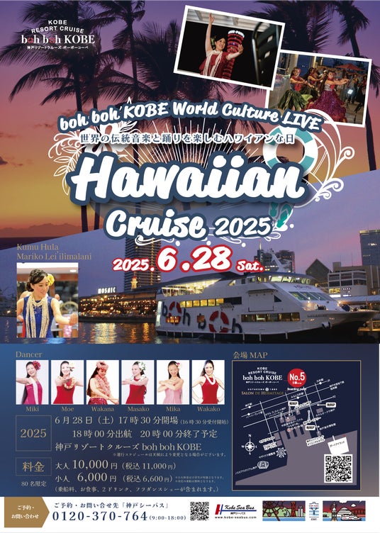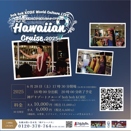 ~‟boh boh KOBE World Culture LIVE” 「Hawaiian Cruise 2025」~■日 程:2025年6月28日(土) 18:00 出航 20:00 終了予定(16時30分受付開始予定)