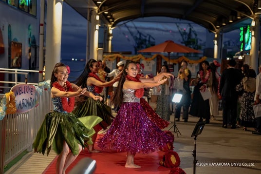 本イベントの特別アーティストには、ハワイ文化を継承するトップマスターとして世界的に有名なハワイの重鎮、フランク・カヴァイカプオカラニ・ヒューエット氏の直弟子であるマリコ・レイイリマラニさんにお越しいただき、師より継承されたハワイの伝統的フラダンスをお届けいたします。その他にも6名のダンサーを船上へと迎え、マリコ・レイイリマラニ氏と共にウェルカムからフィナーレまで計3ステージにわたりショーをお届け予定です。