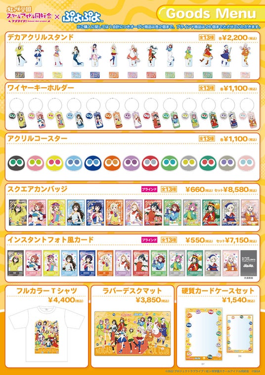 今回のイベントでは、ラブライブ!虹ヶ咲学園スクールアイドル同好会×ぷよぷよの新作グッズを販売いたします。