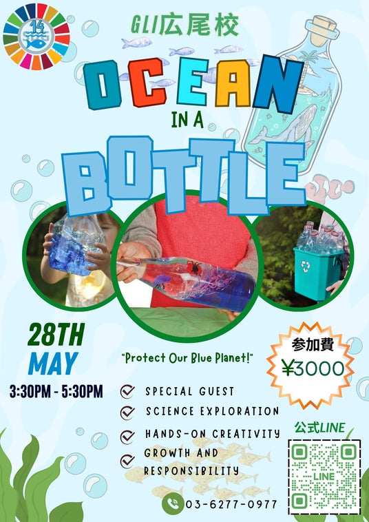 GLI広尾校にて、英語で楽しく学ぶ環境探究イベント『Ocean in a Bottle』を開催。海洋生物や環境問題をテーマに、創造性・英語力・多様性理解を育む特別プログラムです。