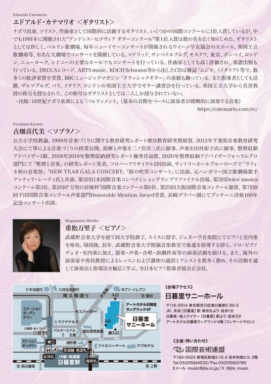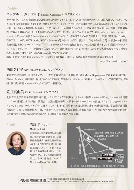 国際芸術連盟(代表:服部和彦)主催、エドアルド・カテマリオの来日公演が、2025年8月~9月の期間、東京都内にて以下の通り5公演開催されます。