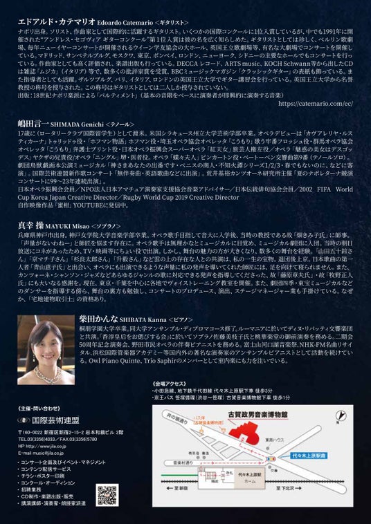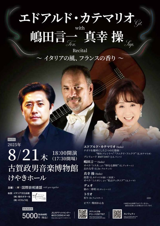 『エドアルド・カテマリオwith嶋田言一・真幸操』~イタリアの風、フランスの香り~公演日時:2025年8月21日 (木) 17:30開場/18:00開演