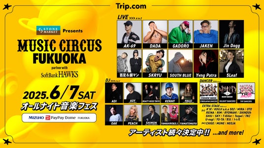 株式会社TryHard Japan(大阪市中央区)は、2025年6月7日(土)にみずほPayPayドーム福岡で開催されるオールナイト音楽フェス「STONE MARKET Presents MUSIC CIRCUS FUKUOKA partner with SoftBank HAWKS」に福岡ソフトバンクホークス オフィシャルダンス&パフォーマンスチーム『ハニーズの出演、スポーツコンテンツ「URBAN SPORTS EXHIBITION(アーバンスポーツエキシビション)」についてお知らせいたします。