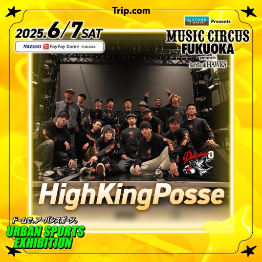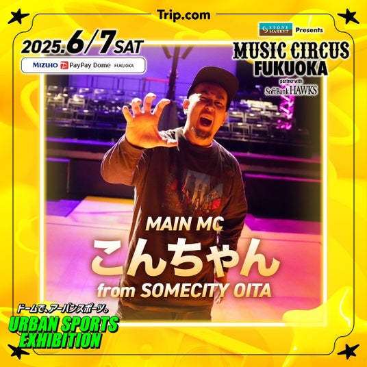 株式会社MUSIC CIRCUS(東京都渋谷区)は、福岡ソフトバンクホークス株式会社(福岡市中央区)と開催する、音楽フェス「STONE MARKET Presents MUSIC CIRCUS FUKUOKA partner with SoftBank HAWKS」に福岡ソフトバンクホークス オフィシャルダンス&パフォーマンスチーム『ハニーズの出演、スポーツコンテンツ「URBAN SPORTS EXHIBITION(アーバンスポーツエキシビション)」についてお知らせいたします。