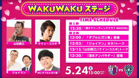 【セレッソ大阪】5/24(土)福岡戦 WAKUWAKUステージ開催!ジョイマンのお二人、山田勝己さん、ケイン・コスギさんなどが登場!!