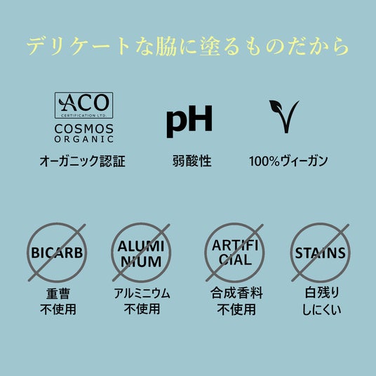 フレッシュな香りや、塗りやすいテクスチャーにこだわるのはもちろん、デリケートな脇に使うものだから、徹底してやさしさにこだわりました。