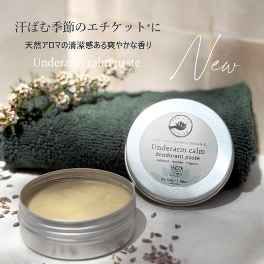 デリケートな脇につかうものだから成分にこだわりました。フレッシュな天然アロマの清潔感ある香りの脇用アロマペースト(COSMOS オーガニック認証取得)新発売