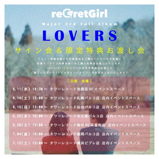 reGretGirl メジャー3rdフルアルバム 「LOVERS」